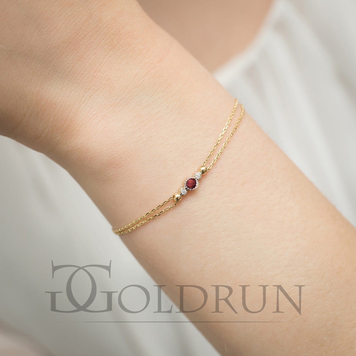 Bransoletka z żółtego złota 585 z rubinem 0,15ct diamentami The Diamonds B005