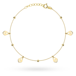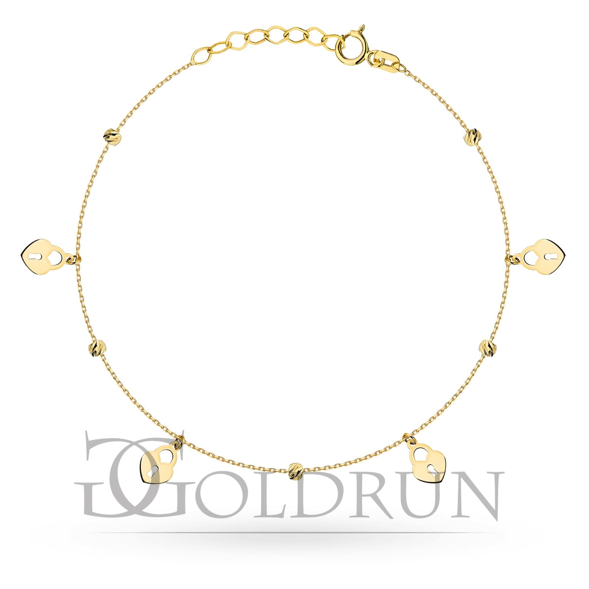 Bransoletka złota z kamieniem, sercem i diamentowanymi kulkami na podwójnym łańcuszku