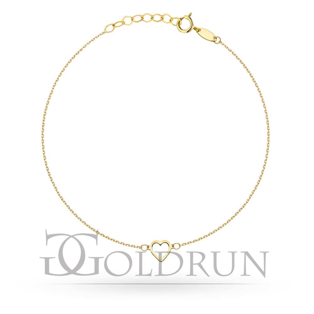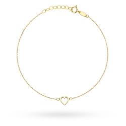 Bransoletka złota z kamieniem, sercem i diamentowanymi kulkami na podwójnym łańcuszku