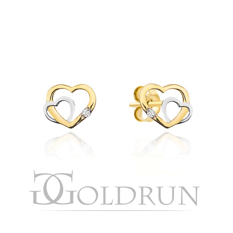 Kolczyki dwa serduszka w dwóch kolorach złota i cyrkonia