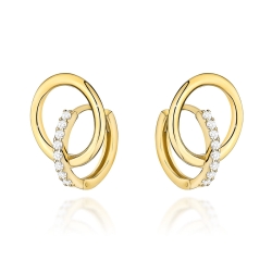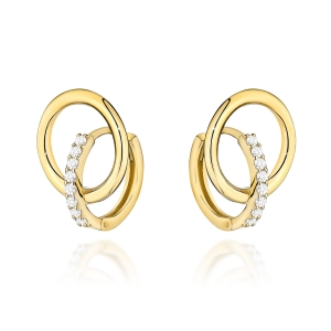 Kolczyki dwa złote kółeczka gładkie i wysadzane cyrkoniami
