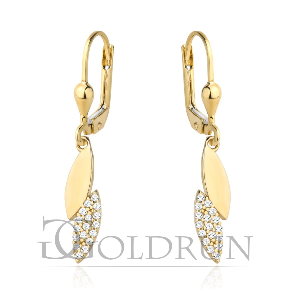 Kolczyki dwie złote łezki gładka i wysadzana cyrkoniami