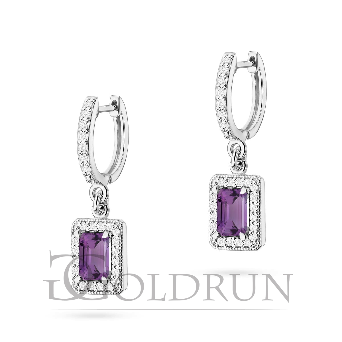 Kolczyki z białego złota 585 z ametystem i diamentami 0,34ct The Diamonds
