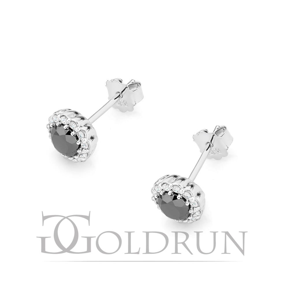 W kolczykach oprawione czarne diamenty o łącznej masie 1,000ct