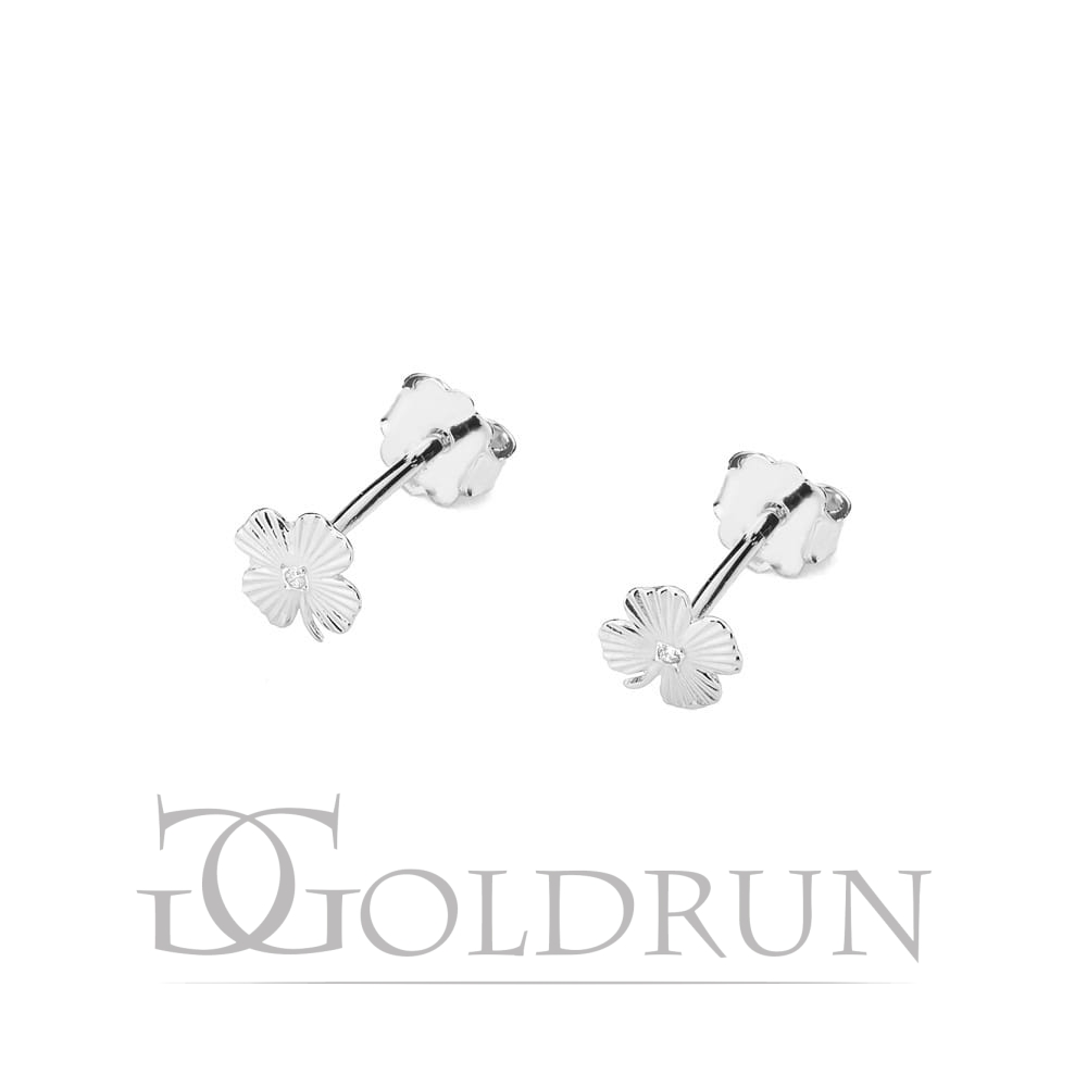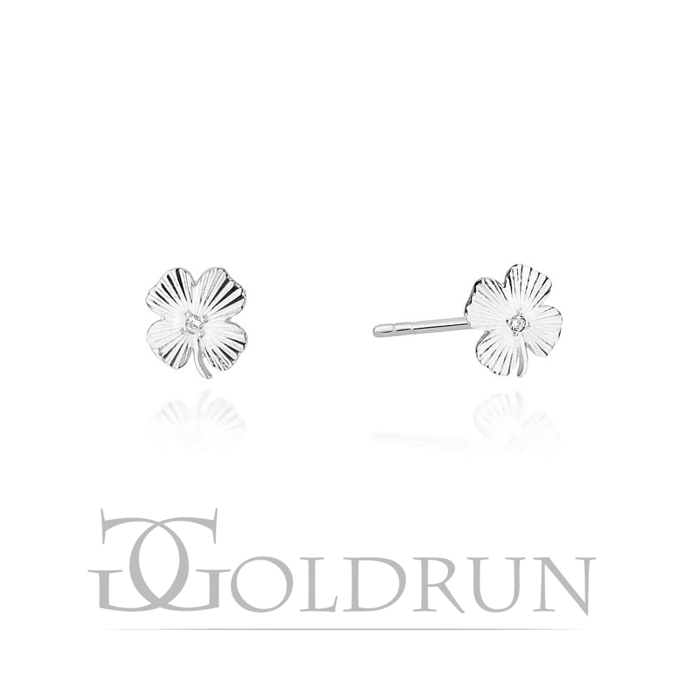 Kolczyki z białego złota 585 z diamentami 0,01ct koniczyna The Diamonds