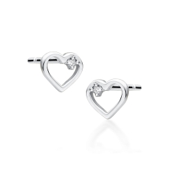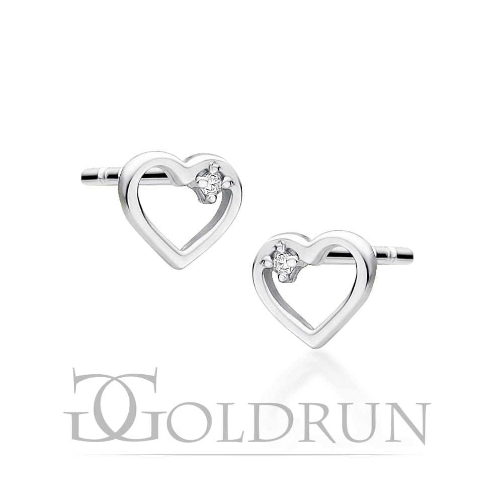 Kolczyki z białego złota 585 z diamentami 0,01ct serce The Diamonds