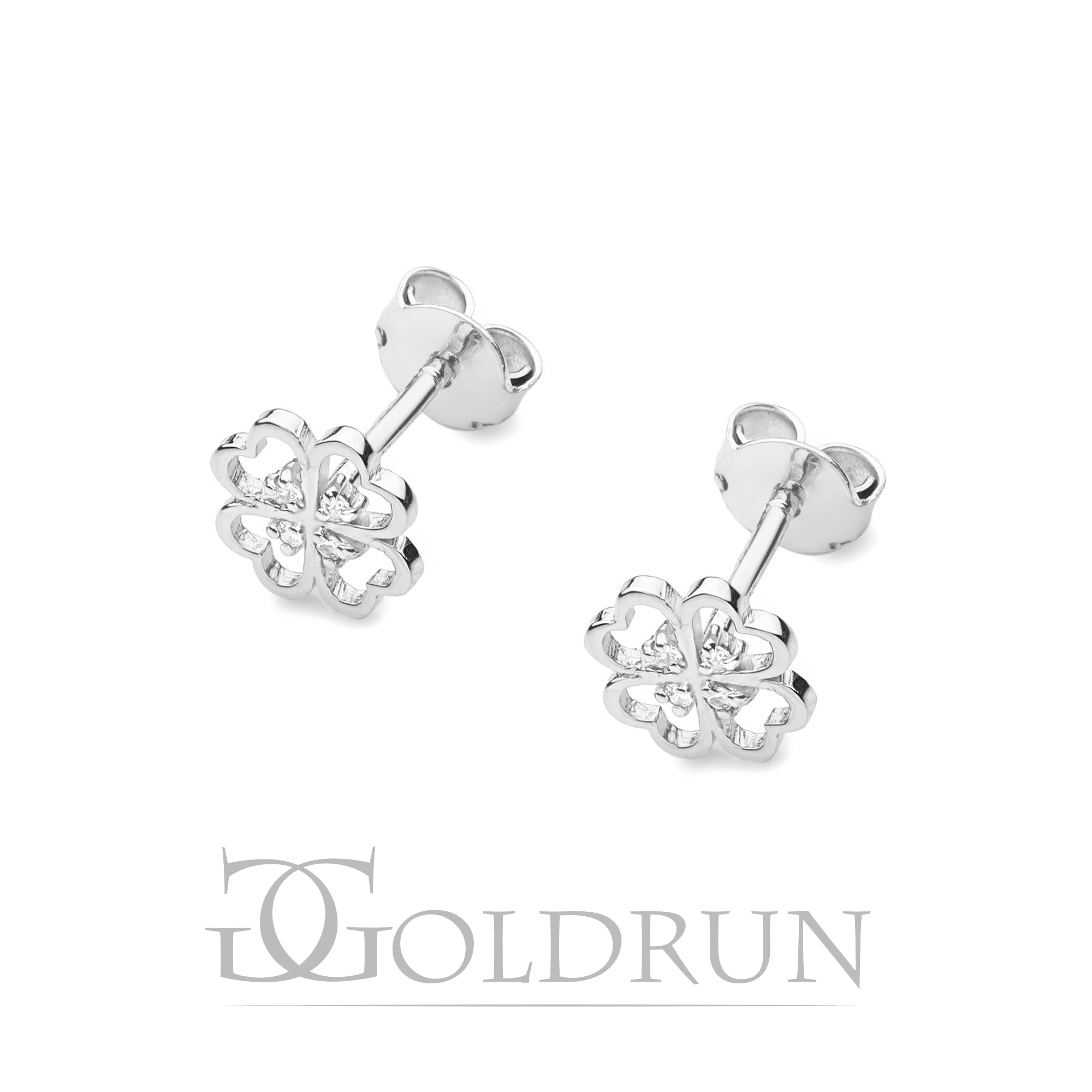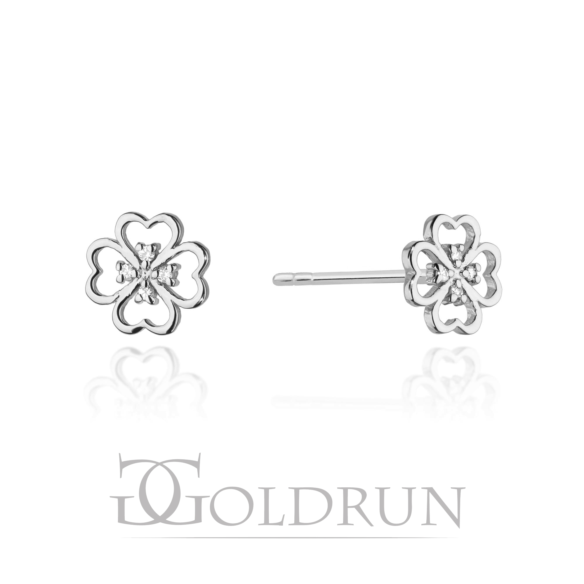 Kolczyki z białego złota 585 z diamentami 0,04ct koniczyna The Diamonds
