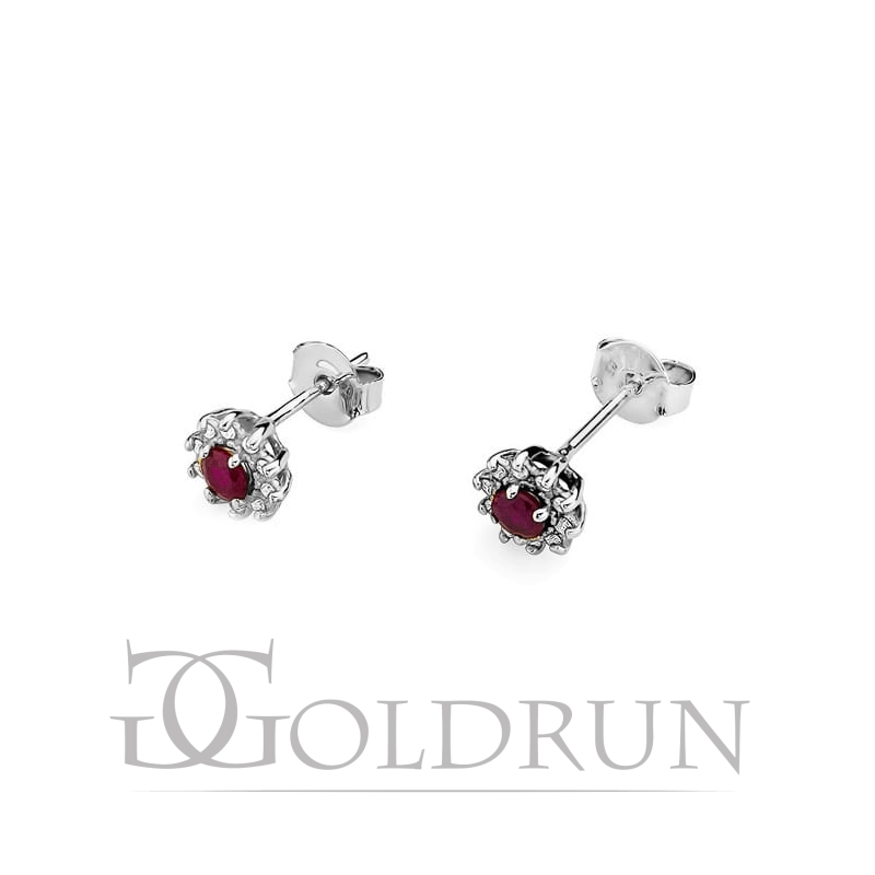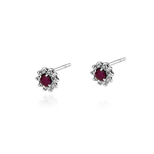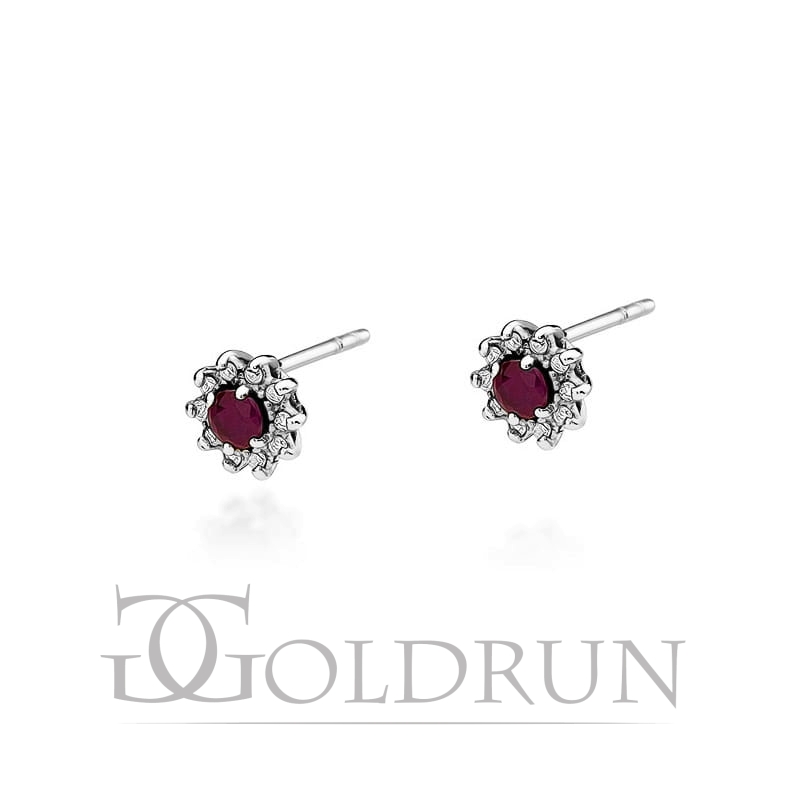 Kolczyki z białego złota 585 z rubinem i diamentami 0,18ct The Diamonds