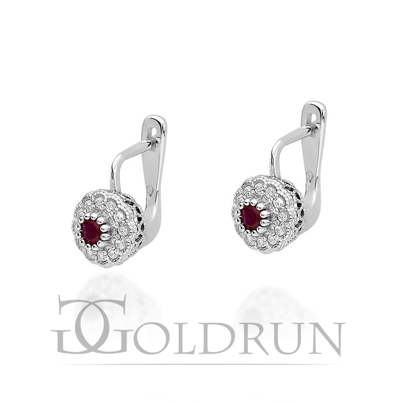 Kolczyki z białego złota 585 z rubinem i diamentami 0,20ct The Diamonds