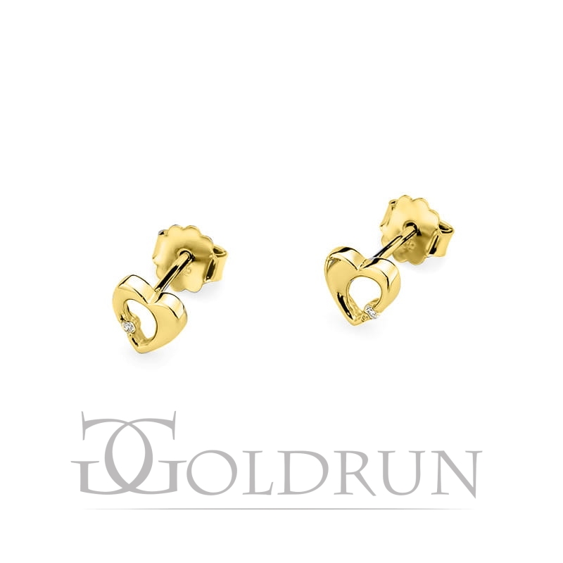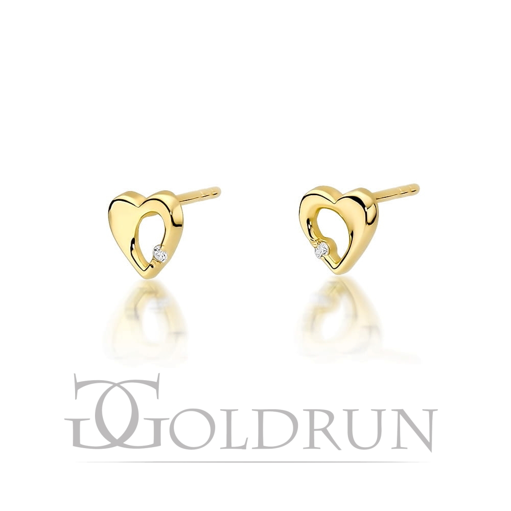 Kolczyki z żółego złota 585 z diamentami 0,02ct serce The Diamonds
