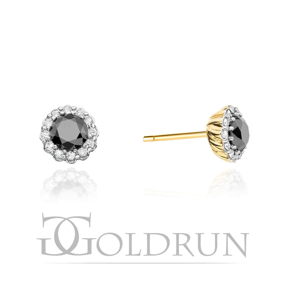 Kolczyki z żółtego złota 585 z czarnymi i białymi diamentami 0,20ct The Diamonds
