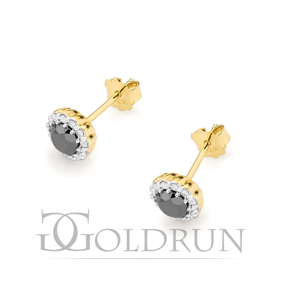 W kolczykach oprawione czarne diamenty o łącznej masie 1,000ct