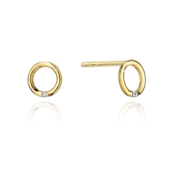 Kolczyki z żółtego złota 585 z diamentami 0,01ct kółka The Diamonds