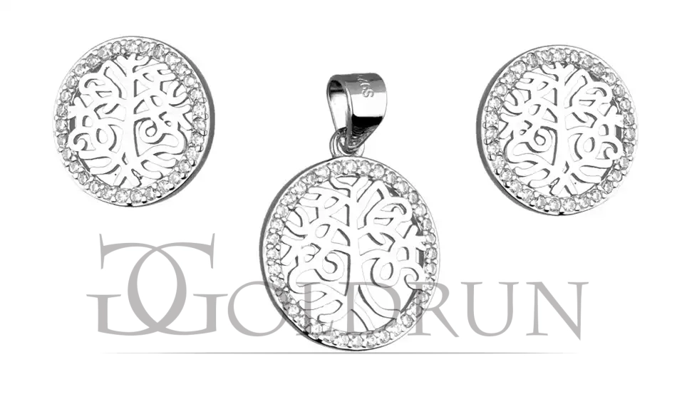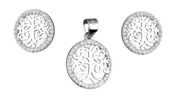 Komplet srebrnej biżuterii kolczyki i zawieszka, drzewko szczęścia w kółku z cyrkonii