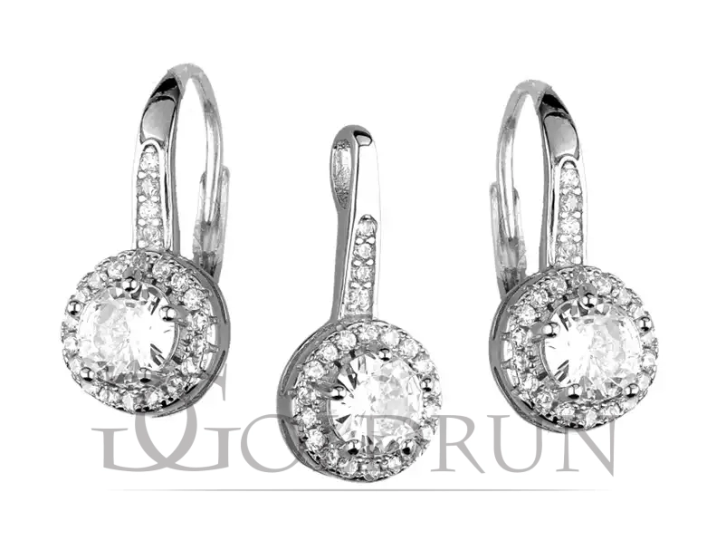 Komplet srebrnej biżuterii kolczyki + zawieszka, cyrkonie, ślub
