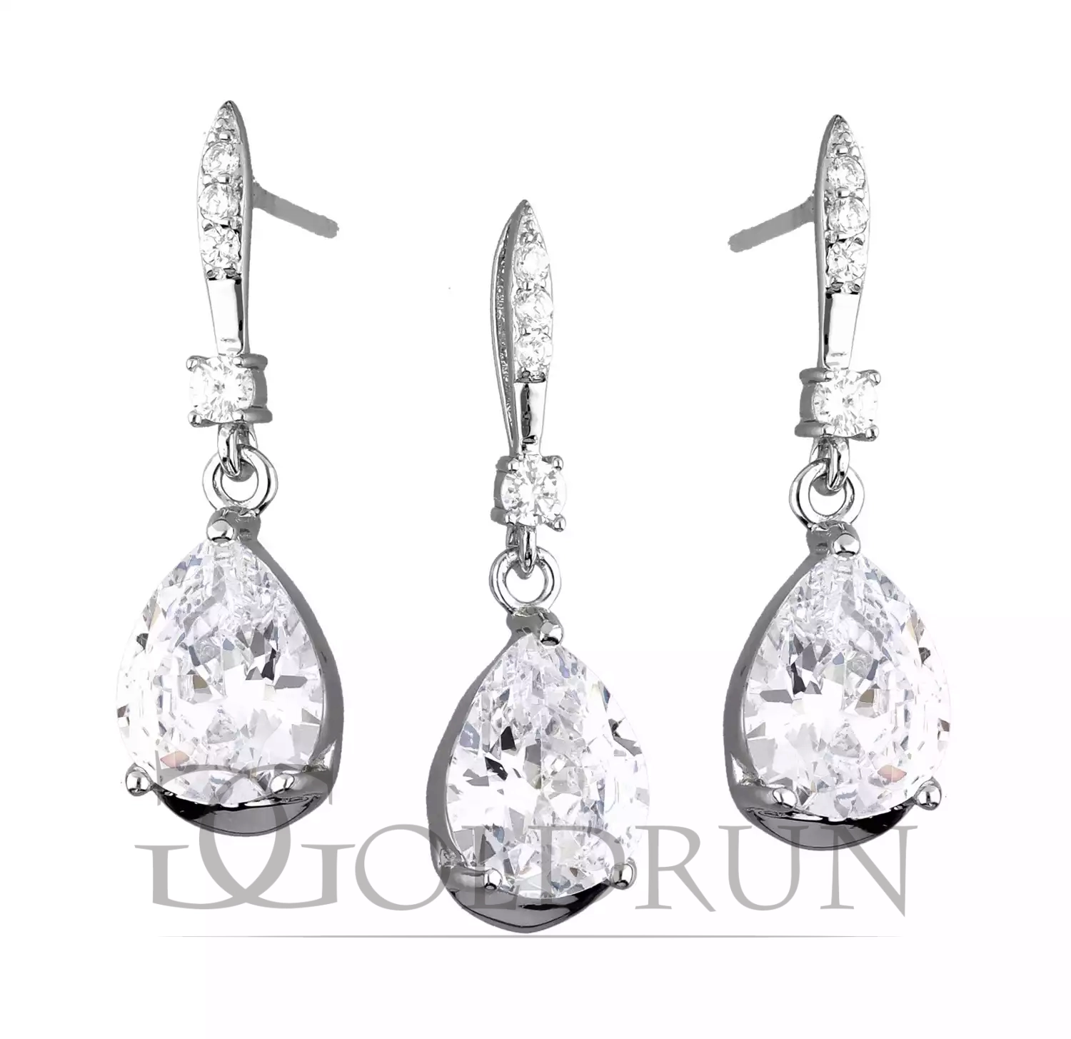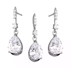 Komplet srebrnej biżuterii kolczyki + zawieszka, duża cyrkonia