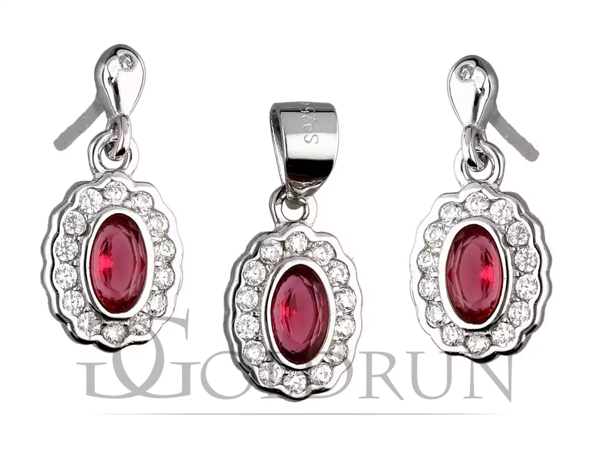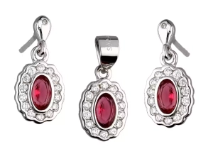 Komplet srebrnej biżuterii kolczyki + zawieszka, rubinowa cyrkonia