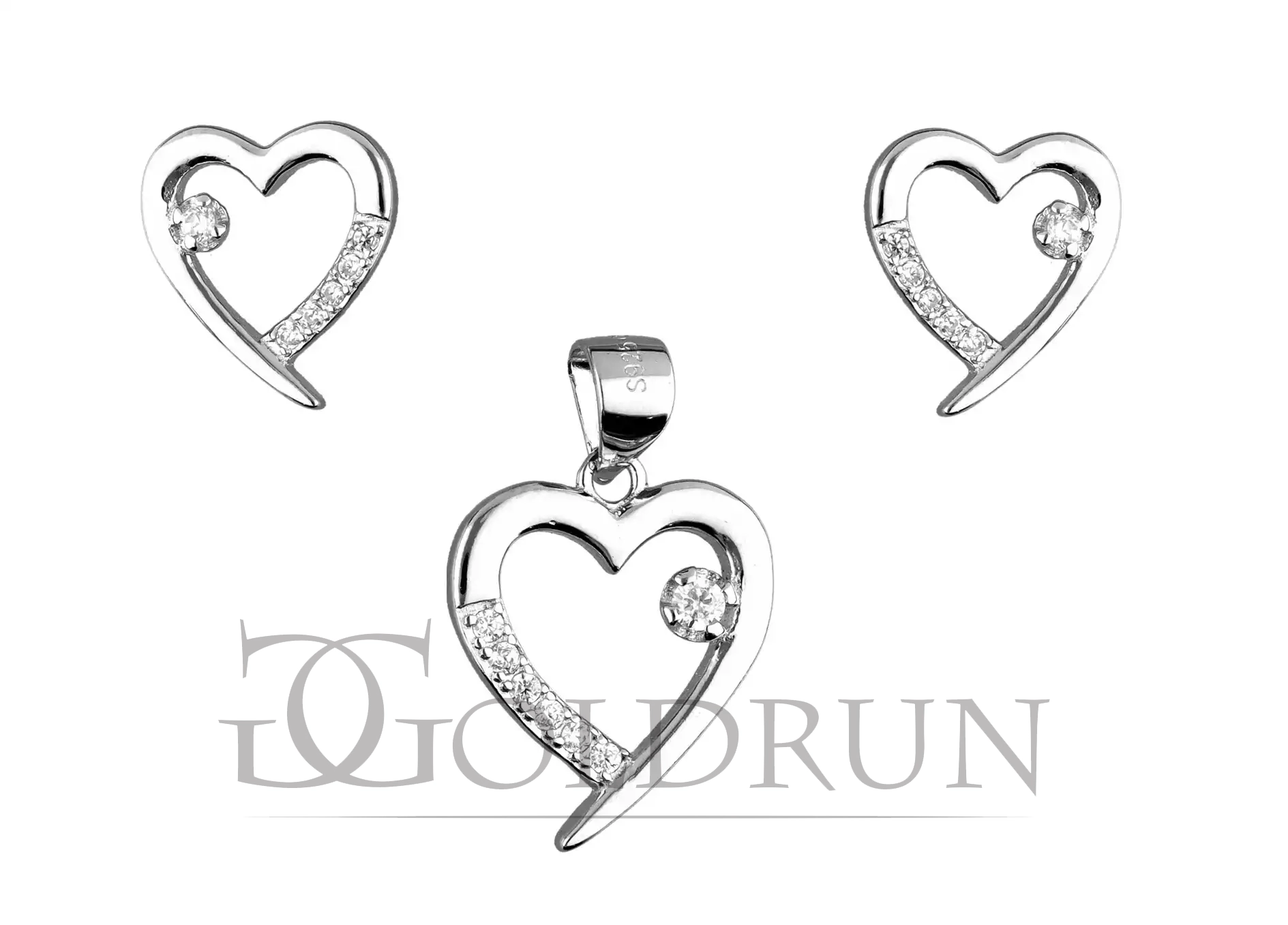 Komplet srebrnej biżuterii kolczyki + zawieszka, serce