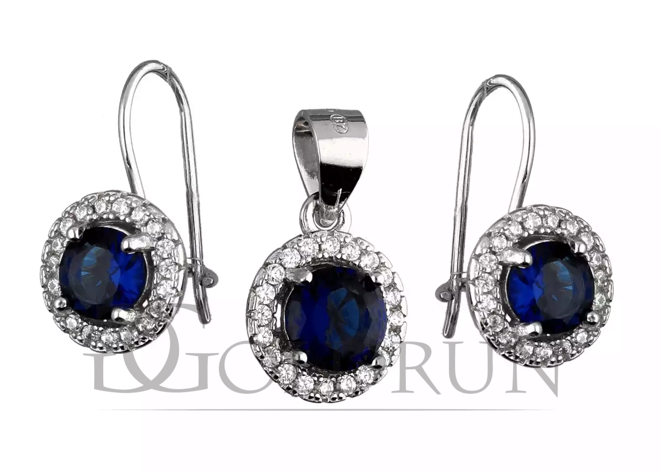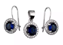 Komplet srebrnej biżuterii kolczyki + zawieszka, szafirowa cyrkonia