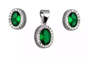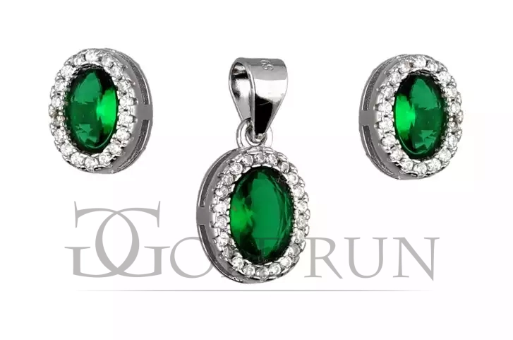Komplet srebrnej biżuterii kolczyki + zawieszka, szmaragdowa cyrkonia