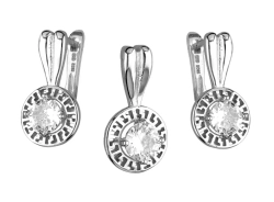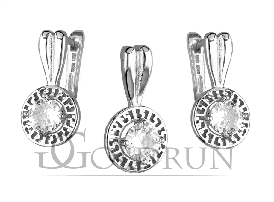 Komplet srebrnej biżuterii kolczyki + zawieszka, wzór grecki, cyrkonia