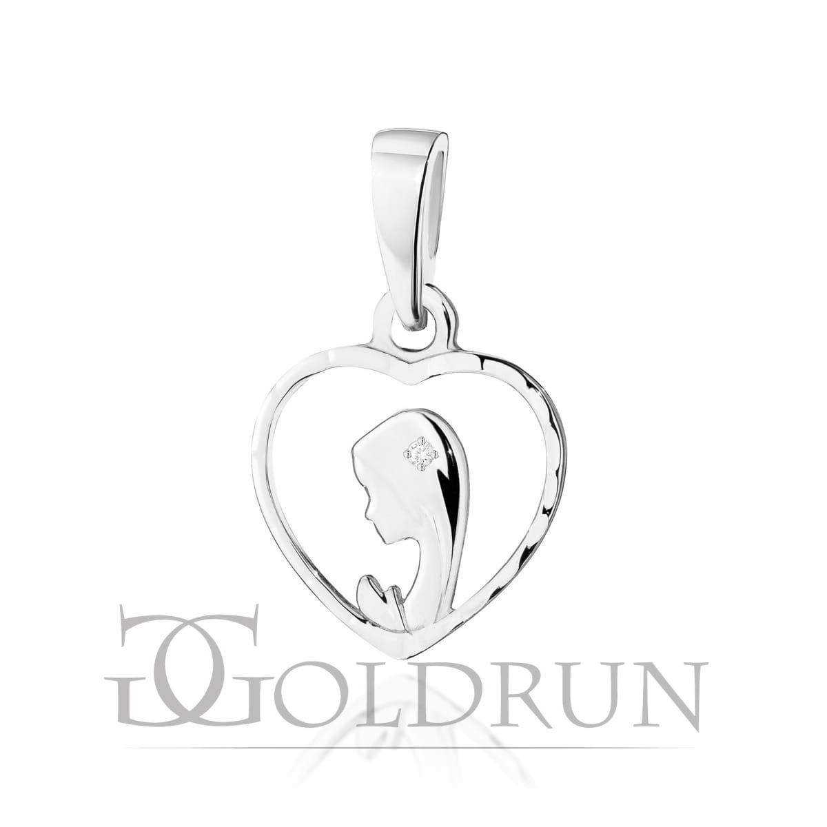 Medalik z białego złota Matka Boska w sercu z diamentem 0,005ct The Diamonds
