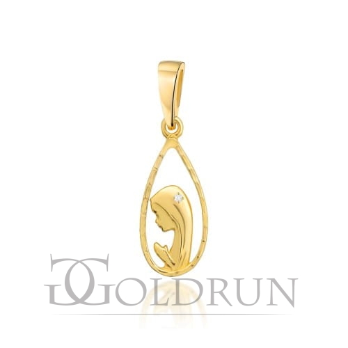 Medalik z żółtego złota Matka Boska z diamentem 0,010ct The Diamonds