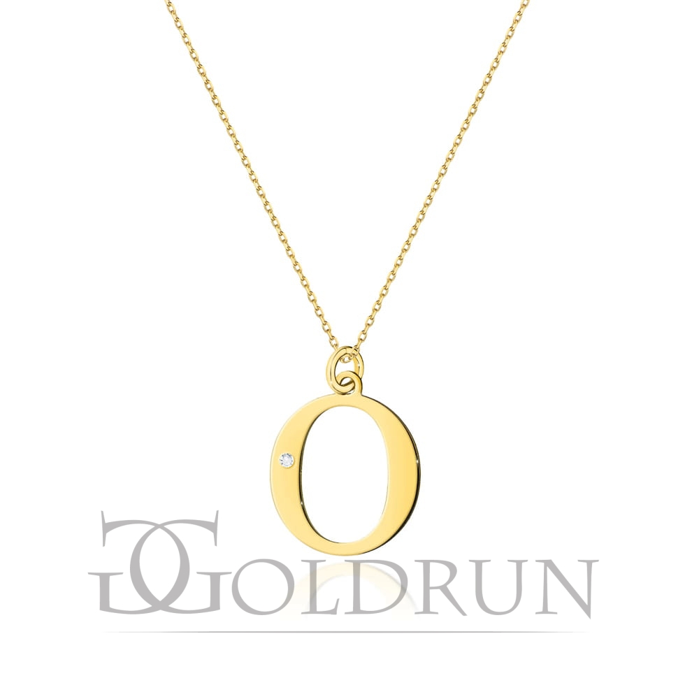 Naszyjnik z żółtego złota z diamentem 0,005ct mała literka O The Diamonds