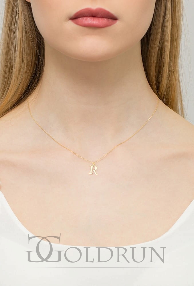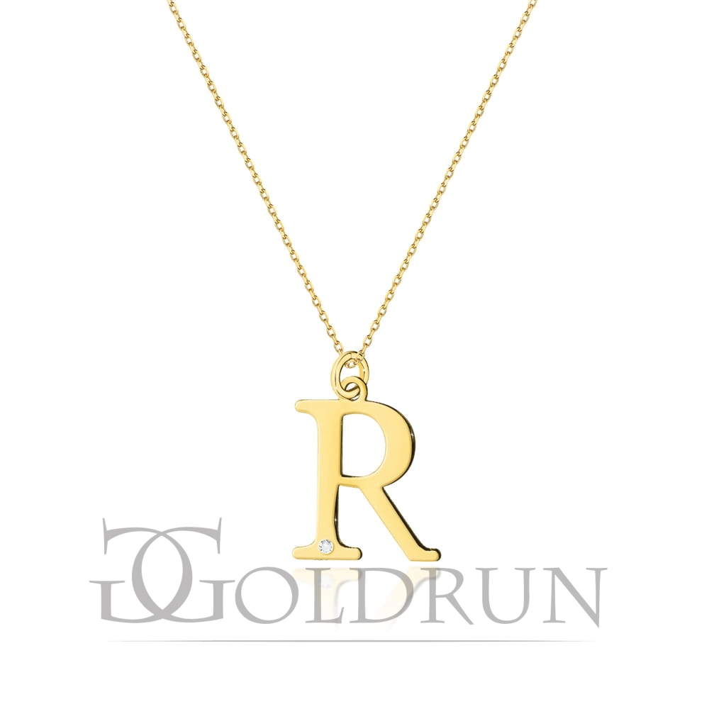 Naszyjnik z żółtego złota z diamentem 0,005ct mała literka R The Diamonds