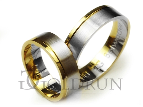 Obrączki ślubne dwukolorowe płaskie 6mm Premium