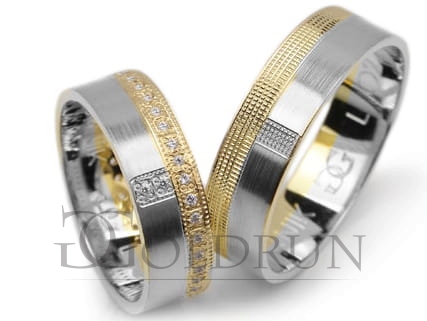 Obrączki ślubne dwukolorowe płaskie z cyrkoniami 6mm Lux L022