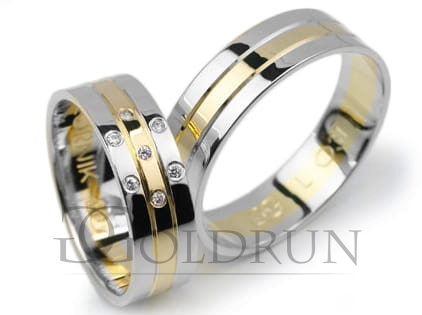 Obrączki ślubne dwukolorowe płaskie z cyrkoniami 6mm Lux L031