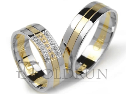 Obrączki ślubne dwukolorowe płaskie z cyrkoniami 6mm Lux L046