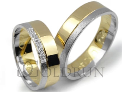 Obrączki ślubne dwukolorowe płaskie z cyrkoniami 6mm Lux L049