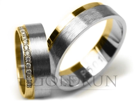 Obrączki ślubne dwukolorowe płaskie z cyrkoniami 6mm Premium