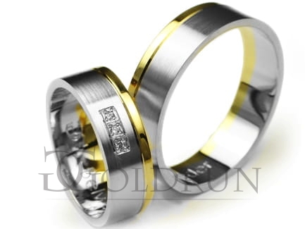 Obrączki ślubne dwukolorowe płaskie z cyrkoniami 6mm Premium