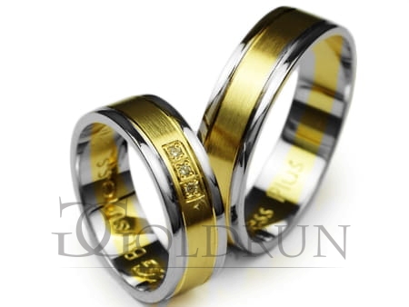 Obrączki Premium:dwa kolor złota, płaskie, 6mm z soczewką