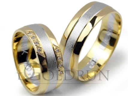 Obrączki ślubne dwukolorowe półokrągłe z cyrkoniami 7mm Lux L064