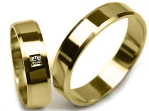 Obrączki Premium: żółte złoto, fazowane, 5mm z soczewką