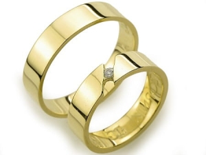 Obrączki Always: żółte złoto, płaskie, 5mm z soczewką