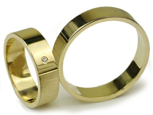 Obrączki Infinity: żółte złoto, płaskie, 5mm z soczewką