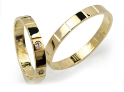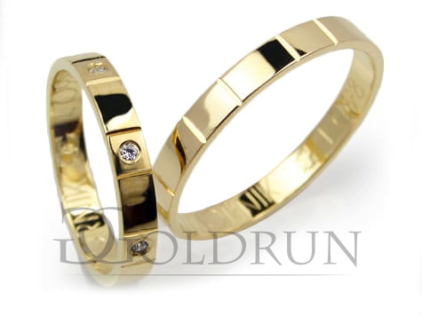 Obrączki ślubne z żółtego złota płaskie z cyrkoniami 3mm Lux L098