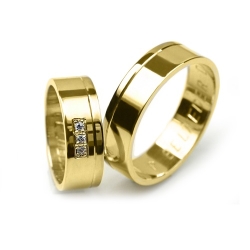 Obrączki Premium: żółte złoto, płaskie, 6mm z soczewką