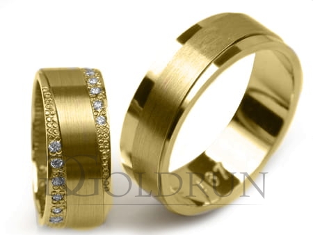 Obrączki ślubne z żółtego złota płaskie z cyrkoniami 7mm Estetic