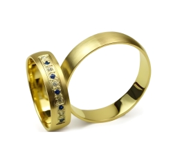 Obrączki są przepięknie. W damskiej są oprawione wszystkie cyrkonie w kolorze szafirowym, jestem zachwycona. Polecam wszystkim poszukującym tych idealnych obrączek, u tego Jubilera znajdziecie ogromny wybór modeli z możliwością wykonania w każdym kolorze złota w atrakcyjnych cenach. Dodatkowo mamy grawer w prezencie i odnowienie. :)