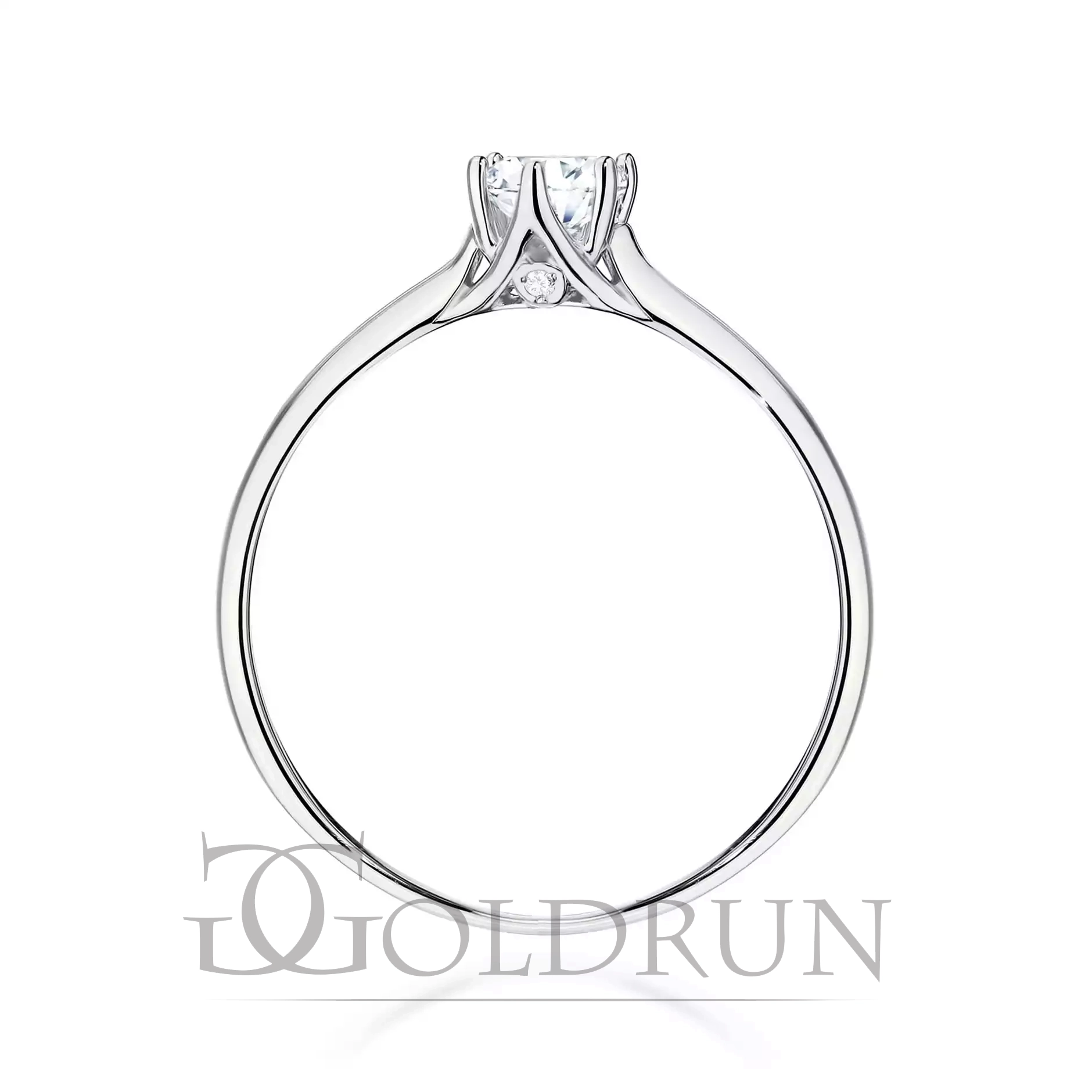 W koronie pierścionka oprawione diamenty laboratoryjne o łącznej masie 0,01ct