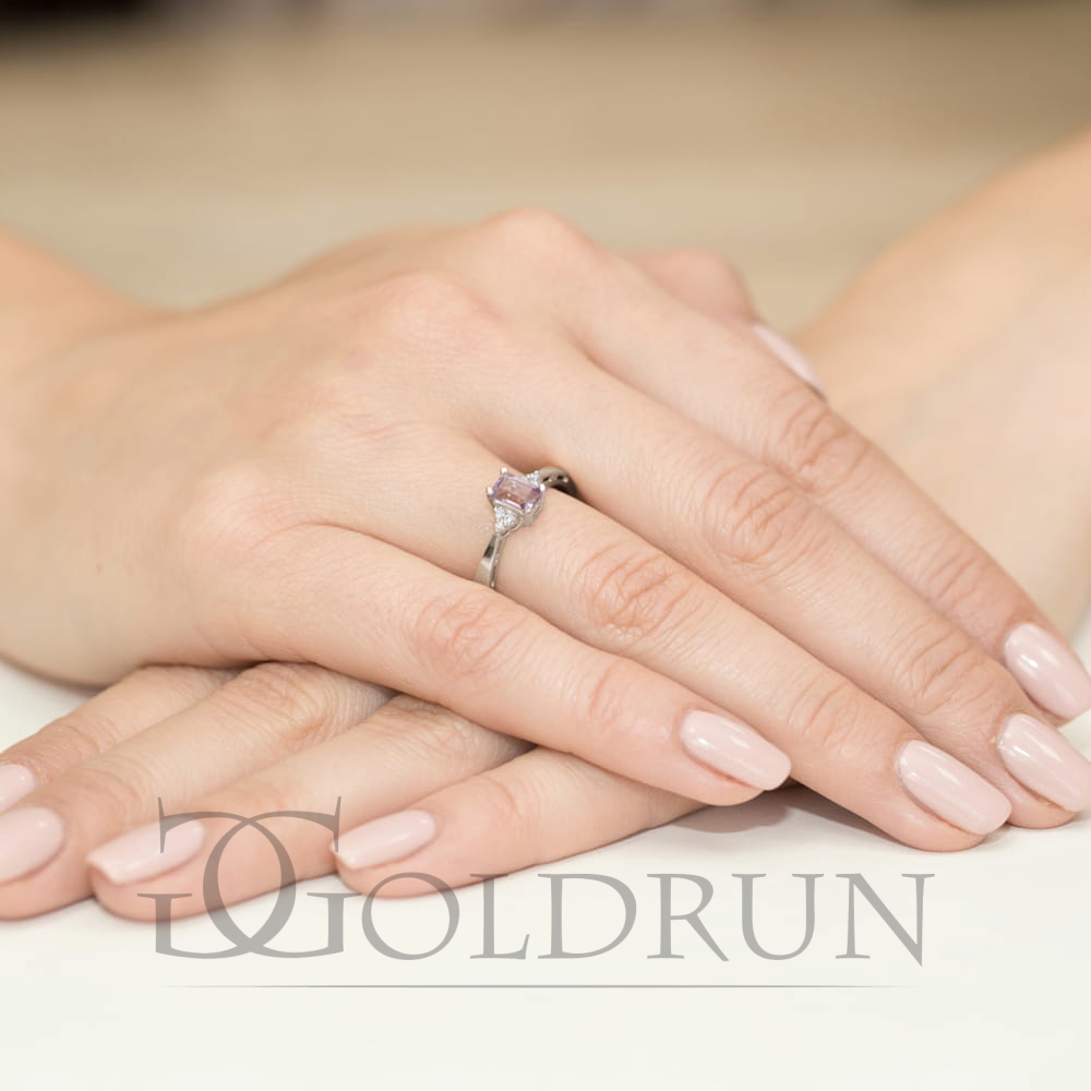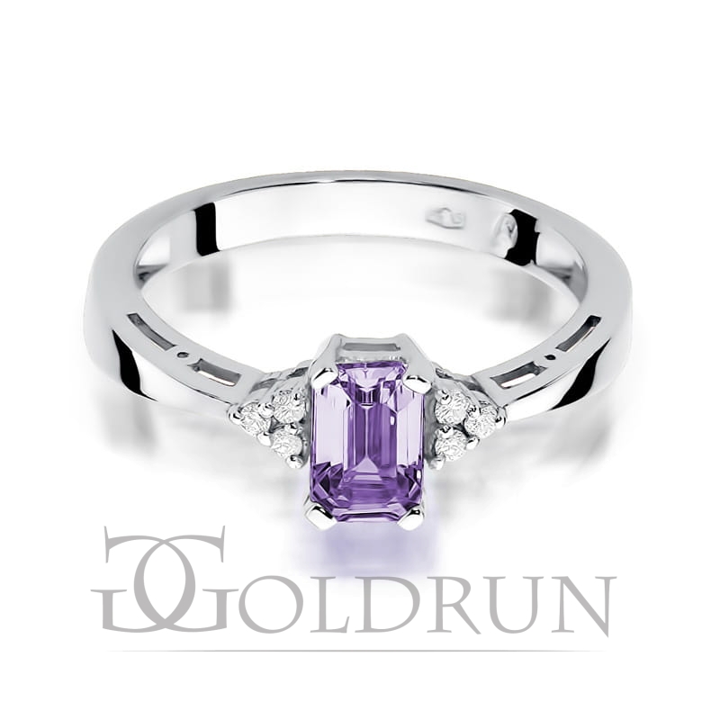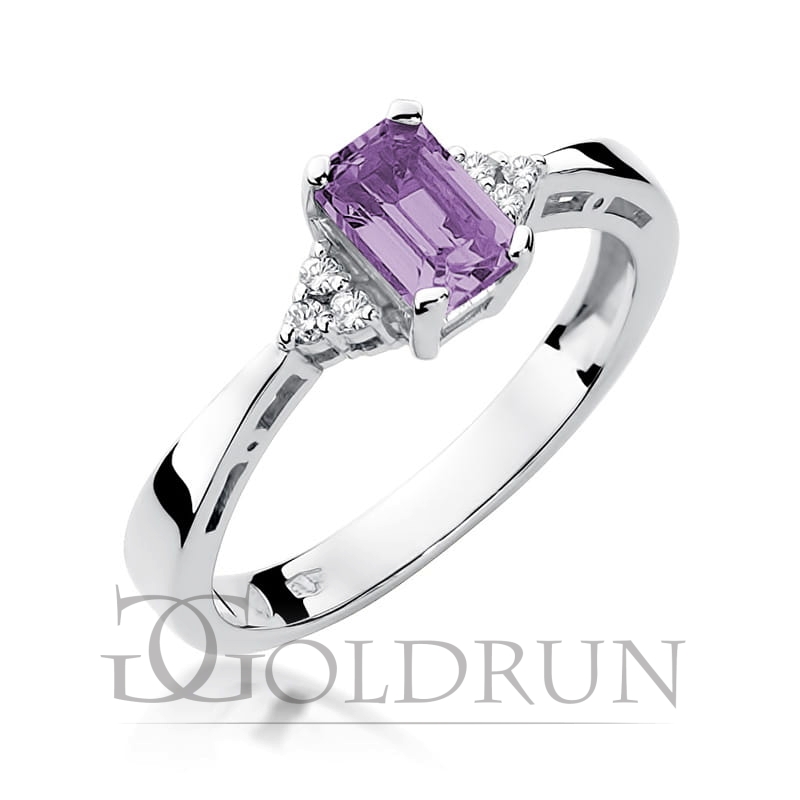 Pierścionek zaręczynowy z białego złota z ametystem i diamentami 0,03ct Fire Of Love