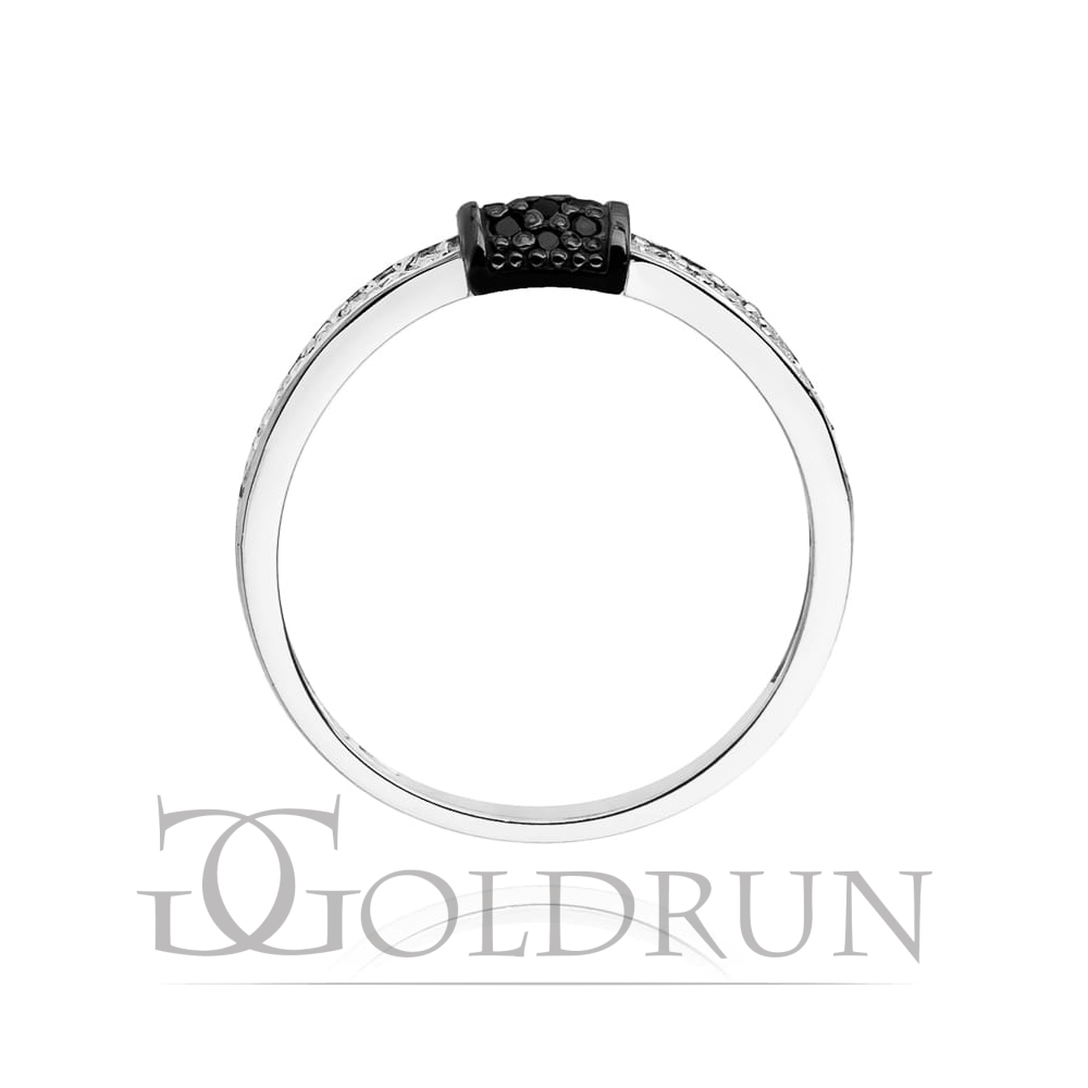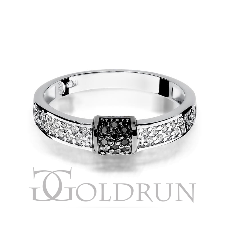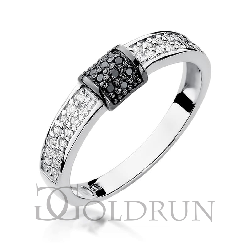 W pierścionku oprawione czarne diamenty o masie 0,050ct oraz białe diamenty o masie 0,140ct.