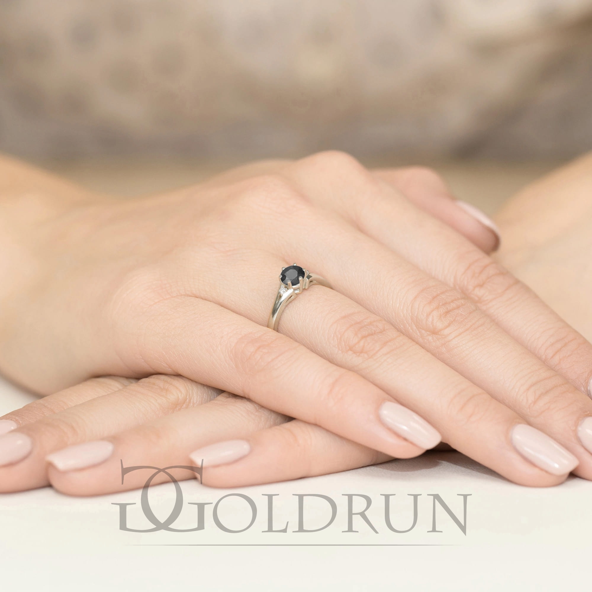 W pierścionku oprawiony czarny diament o masie 0,500ct