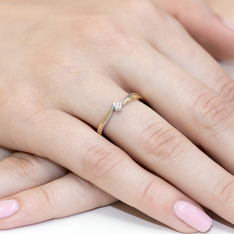 W pierścionku oprawiony diament o masie 0,040ct